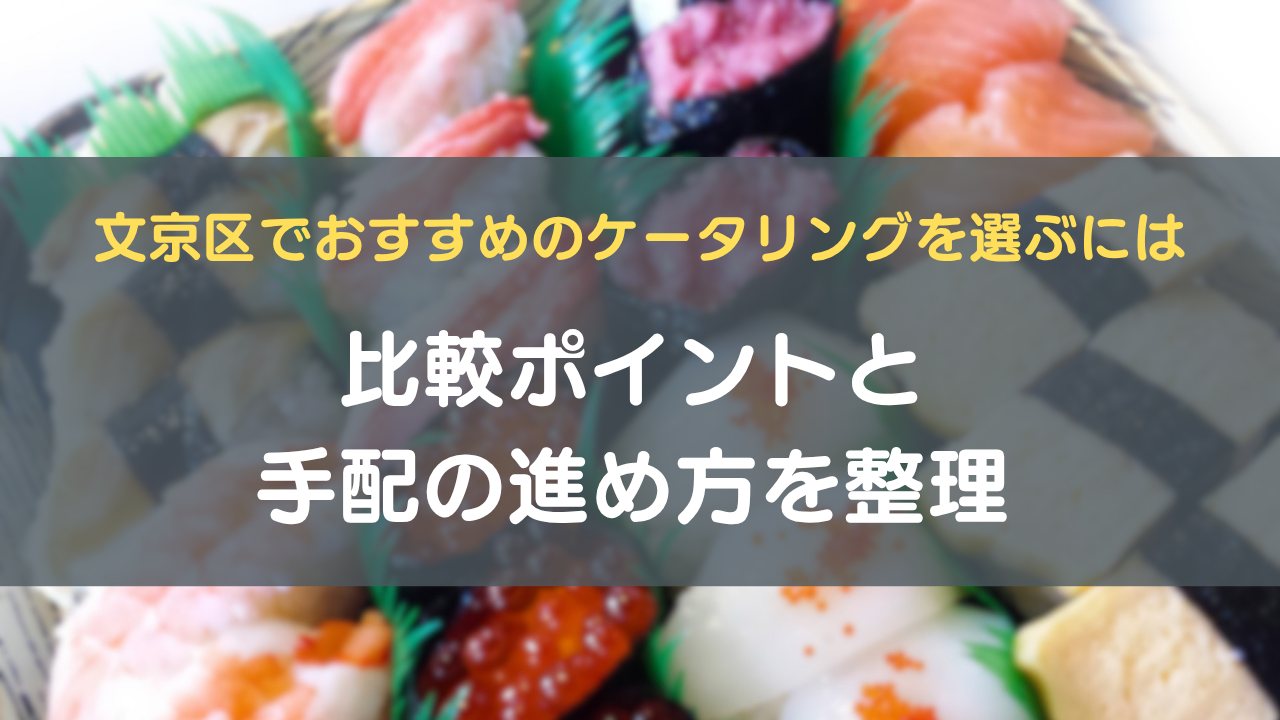 スタッフのサーブの有無が大きな違いとなります。 ケータリングとは、サービススタッフが常駐し、お料理の設置、装飾、配膳、片付け、ゴミ回収、撤収までしてくれるサービスです。ゲストや上層部をお招きする式典や製品発表レセプション、講演会後の会食、スポーツイベント等、お客様が進行にご専念されたい場合はケータリングが最適です。 一方、オードブルとは、調理済みのお料理を使い捨て容器でお届けするサービスです。オードブルはワンウェイの宅配感覚で価格もお手頃です。チームでのランチ会、納会、社内懇親会などアットホームな雰囲気の会におすすめです。
