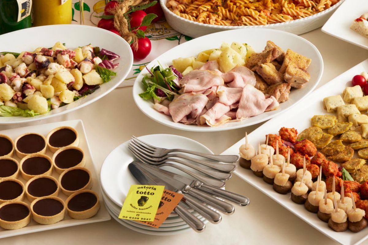 「カジュアルイタリアン × バルスタイルドリンクプラン(立食対応・2時間飲み放題付き)」は、西麻布の裏路地にある隠れたイタリア大衆食堂『osteria・totto』が提供するオードブルです。