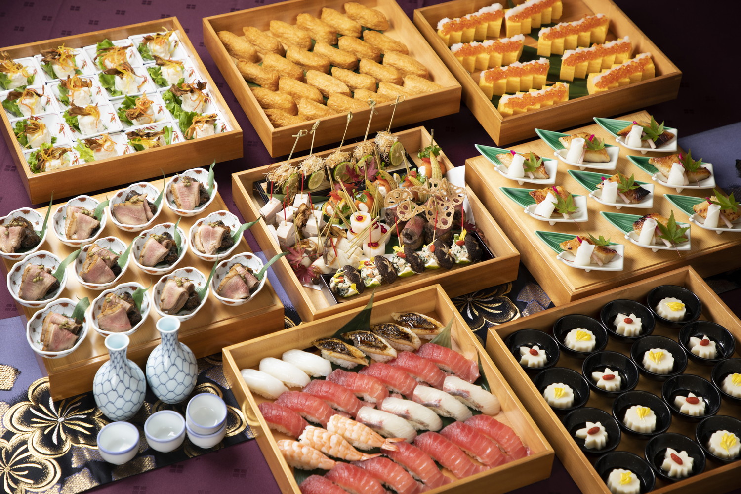 品目 | 【お料理】※25名様を想定したお料理数です。 ・にぎり寿司 3台 ・稲荷寿司 1台 ・料理長お任せ 和ピンチョス 6種×4 1台 ・鴨山椒煮 12個 ・カラス鰈の西京焼き 12個 ・いぶりがっこのクリームチーズポテトサラダ 16個 ・吉野葛の胡麻豆腐 16個 ・だし巻き卵いくら盛り 1台 ※ご参加の人数様に応じてお料理の量や台数は変動いたします。 【フリードリンクメニュー】 ・瓶ビール(中瓶) ・ウィスキー ・焼酎(芋・麦) ・ワイン(赤・白) ・ウーロン茶・アップルジュース ・ミネラルウォーター ・炭酸 【備品】 テーブルクロス・取り皿(メラミン皿)・カトラリー・グラス) ▼スタッフについて ご提供に伴い~30名様につき1名前後の配膳スタッフがプラン料金に含まれます。 配膳スタッフを追加希望の場合、別途有料(18,000円税別/名)となります。