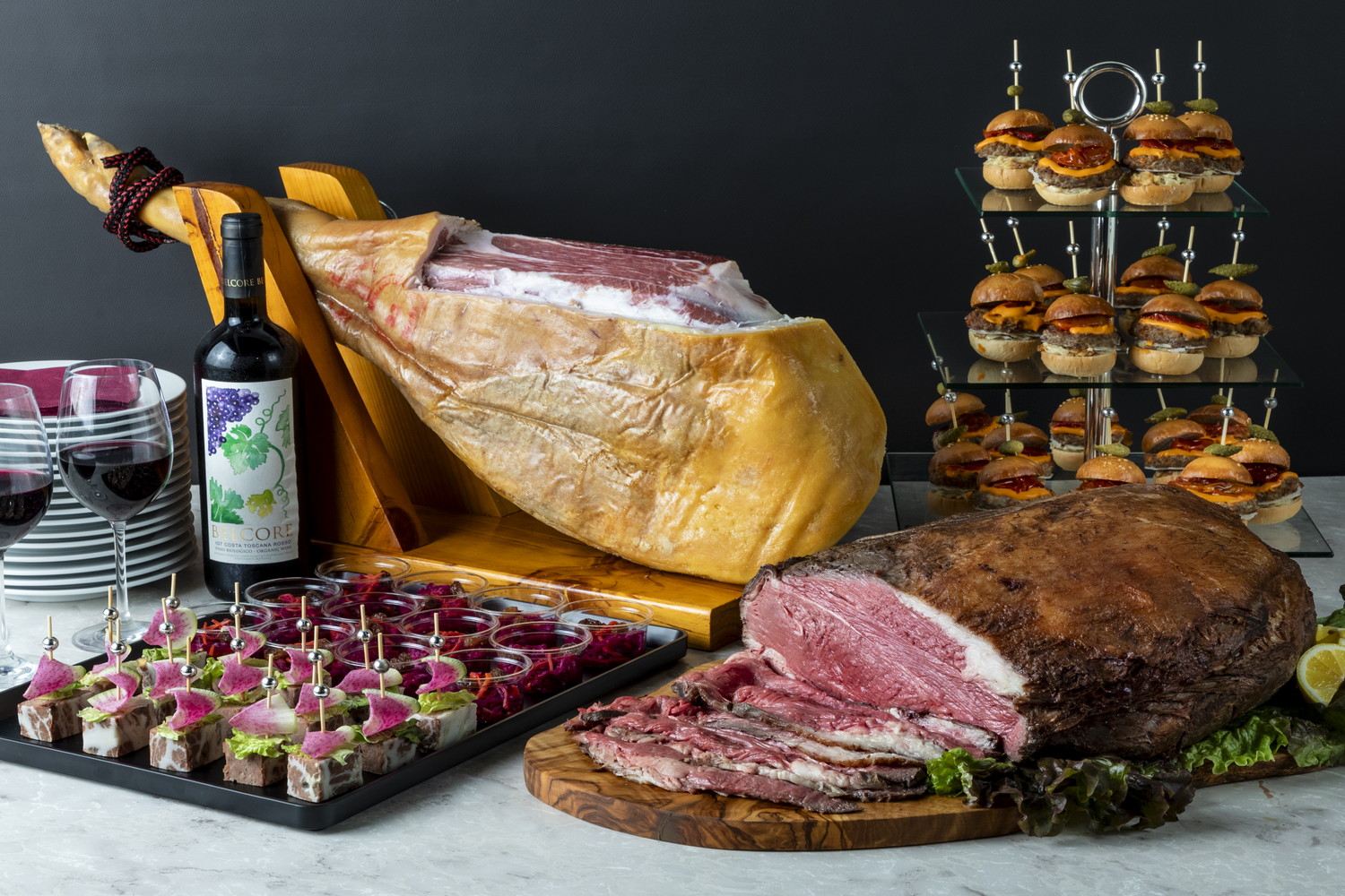 見た目の華やかさと満足感を兼ね備えた正統派の料理構成で、大切なご会合やイベント、パーティーを格調高く演出いたします。王道のケータリングとして、特別な場にふさわしい品質と安心感をお届けいたします。