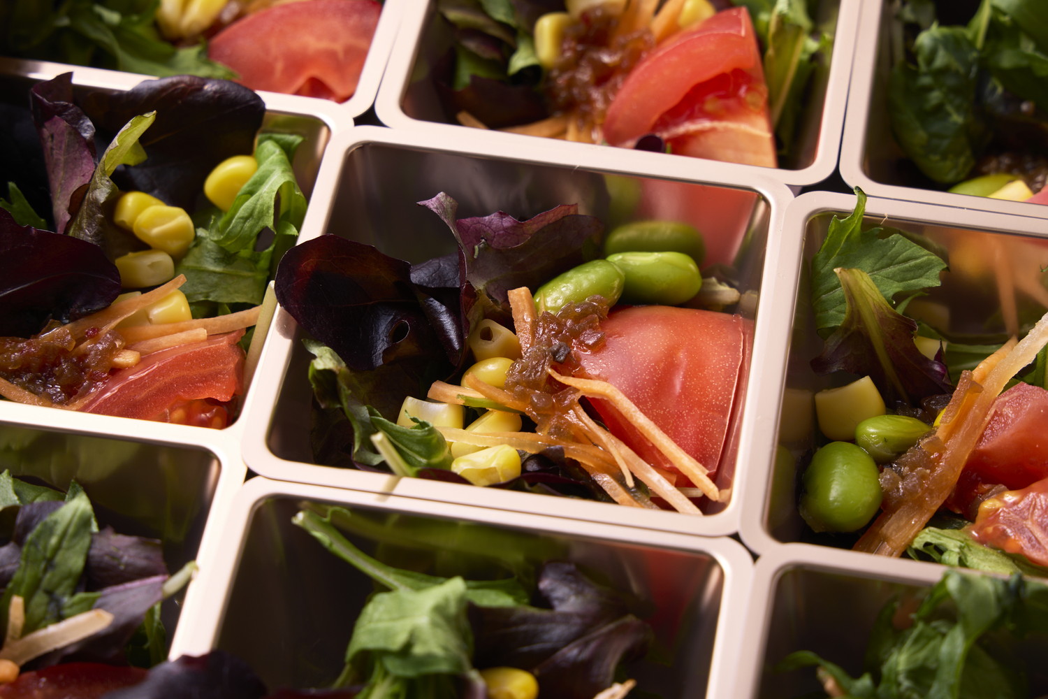 同じビルのSustainuS farmでLEDの光によって水耕栽培された数十種のエディブルフラワーやハーブ、葉物野菜を食材として使用します。 サラダからパスタ、お肉料理まで幅広くご提供可能です。味はもちろん、見た目も華やかなお料理なので企業のパーティーに人気です。