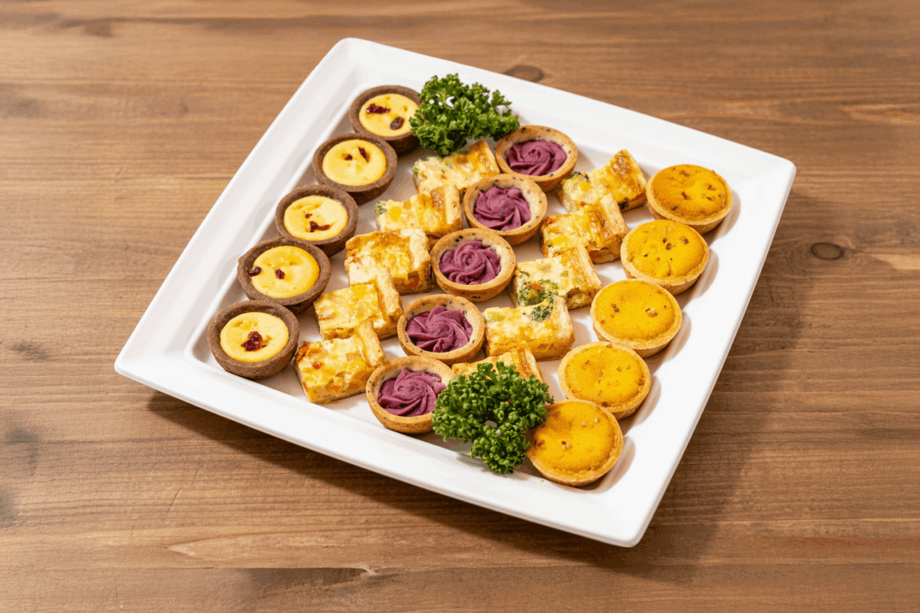 【MENU】 ・洋風フライ盛り合わせ(海老フライ・ささみチーズフライ・白身フライ・春巻き) ・カナッペ盛り合わせ ・チーズ盛り合わせ ・ミックスサンドイッチ ・フライドチキン&フライドポテト ・ローストポーク ・冷製パスタ(トマト・生ハム・オリーブ入) ・プチキッシュ&タルトレット ※季節毎の仕入れによりメニューが変わる場合がございます。予めご了承ください <分量> 各1~2ピース/サンドイッチ3ピース/冷製パスタ40~50g(1名あたりの目安) 【備品】備品一式:紙取皿、割箸、紙おしぼり、ゴミ袋 |