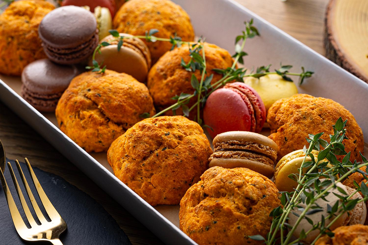 ①シェフの気まぐれ彩りサラダ ②本⽇のフライ ③スペイン⾵オムレツ ④ビーツポテトサラダ ミニタルト仕⽴て ⑤パテドカンパーニュ ⑥ロースト鴨とブロッコリートマト ⑦紫キャベツと⾃家製ローストポーク ⑧フォカッチャバーガー ⑨季節のセイボリースコーン ⑩マカロン 【無料付帯】 紙皿、箸、紙お手拭き |