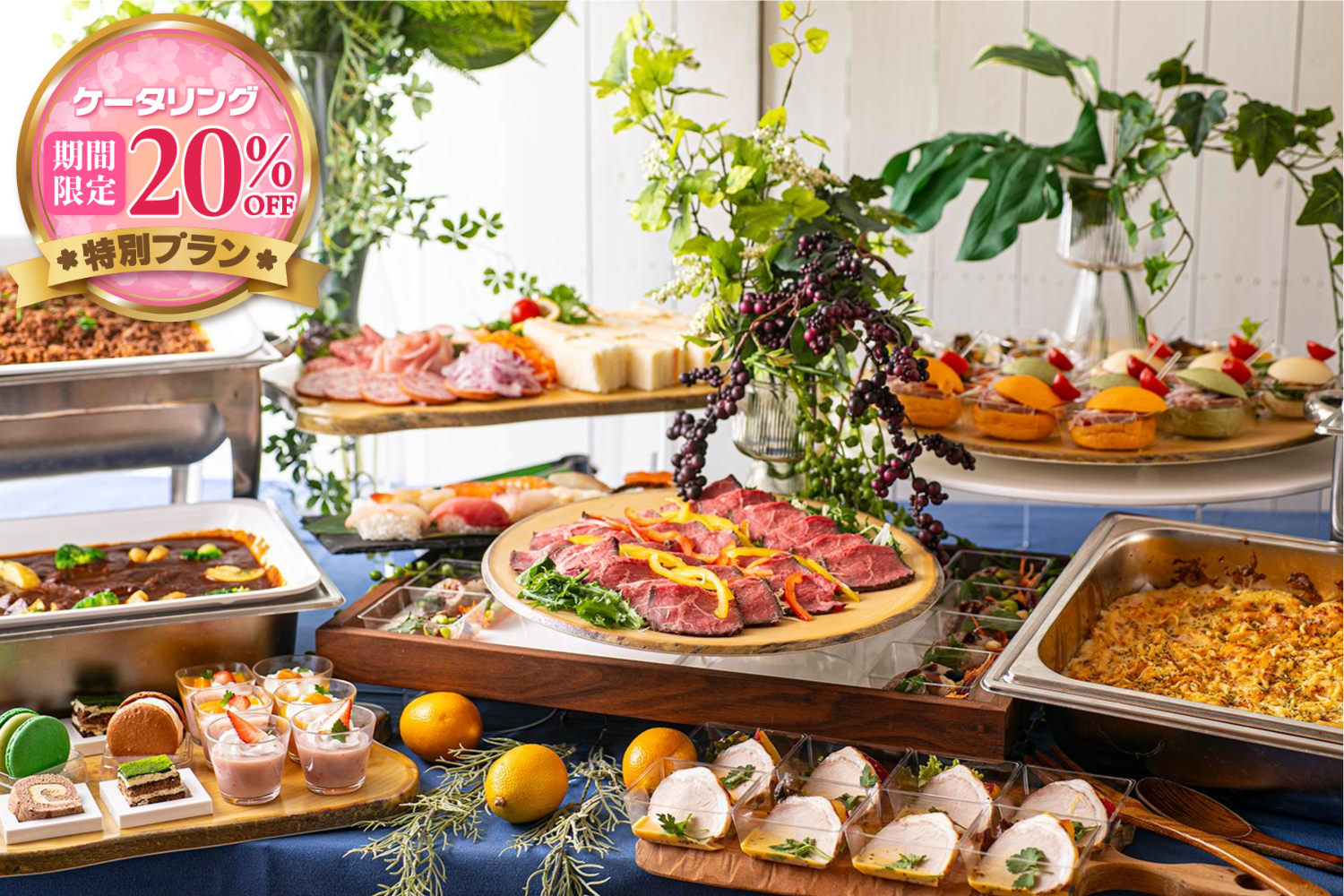華やかなお料理は、会議、セミナー、パーティーなど、どんなシーンにもふさわしく 多彩なメニューは、お客様のご要望に合わせてカスタマイズが可能です。 和洋中の多様なジャンルのお料理が手軽に楽しめるプランです。 【ご注意事項】 ・期間限定プランとなりますので、オプションメニュー以外のカスタマイズはお受けできません。 ・2月1日(日)~4月31日(火)開催限定の特別プランとなります。対象期間以外のご注文につきましてはご予約は出来かねます。 ・先約優先となり、スケジュールの仮押さえは出来かねますのでご了承ください。 ・ご注文確定後の人数変更については1週間前程度を目途に各店舗ごとに異なります。各店舗情報ページ「変更・キャンセル規定」をご確認お願いいたします。 |