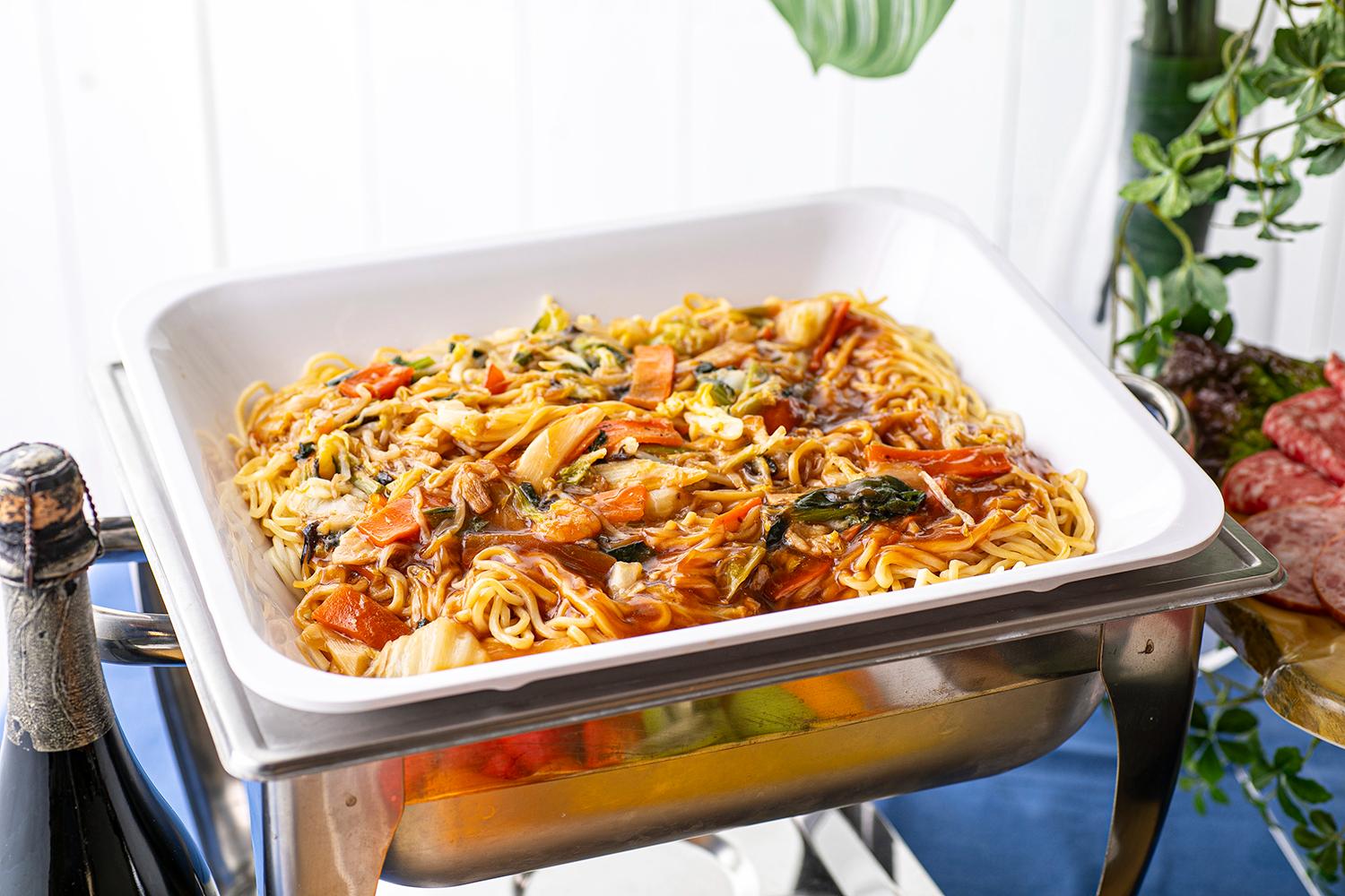 ▼MENU 【温製料理】中華ジャンボ焼売 【温製料理】上海焼そば 【温製料理】焼きめし フィンガーフード ローストビーフ シャルキュトリー カクテルサンドイッテ 握り寿司 フルーツ盛り合わせ |