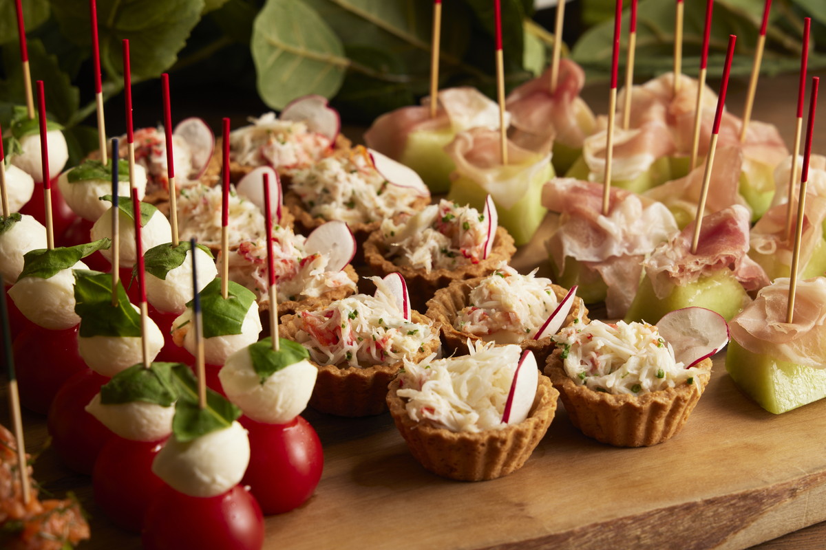 【FOOD】※仕入れの状況によってご提供メニューが変更となる場合がございます ・彩-TEMARI- <4種> (黒毛和牛ローストビーフ/マグロ/サーモン/白身魚) ・ミニタルト<2種> (ズワイガニのタルト/リエットのタルト) ・ピンチョス<3種> (フリッタータ/カプレーゼ/サーモンタルタル) ・淡路島産牛肉パティのミニバーガー ※ロゴフラッグ希望の方はオプション選択ください ・ガトーショコラ ・ベイクドチーズケーキ ・季節のフルーツタルト |