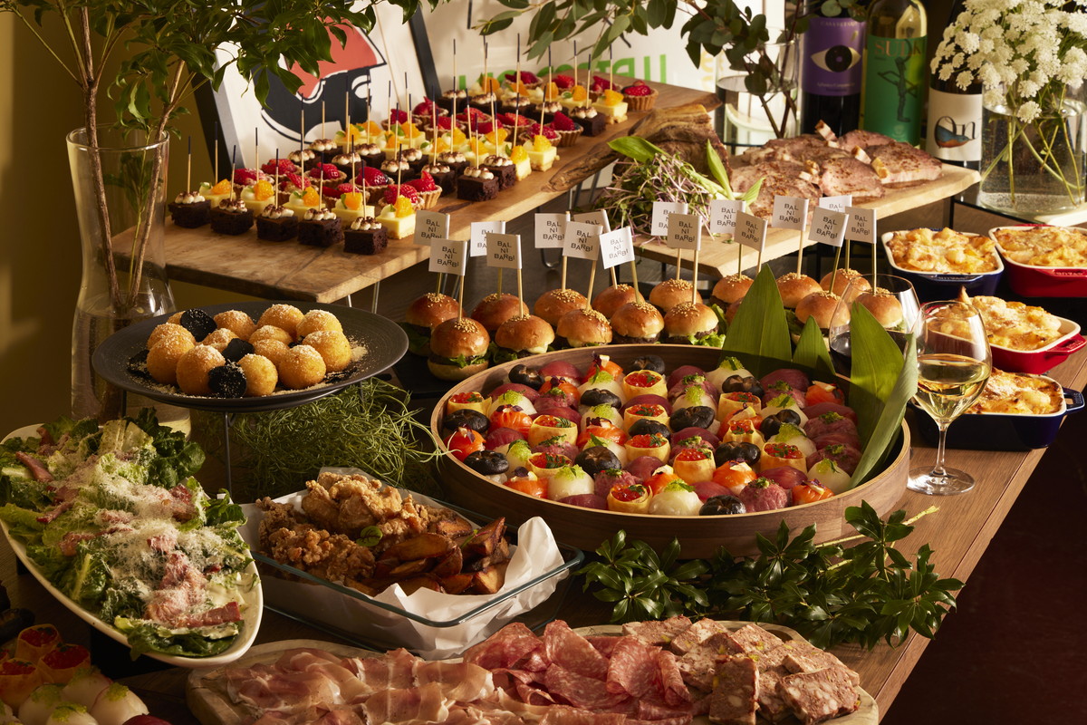 【FOOD】※仕入れの状況によってご提供メニューが変更となる場合がございます ・彩-TEMARI- <ひとくちサイズの手毬鮨> (黒毛和牛ローストビーフ・マグロ・サーモン・白身魚) ※いくら・椎茸はオプションで追加可能です ・淡路島産牛肉パティのミニバーガー ・厚切りベーコンとロメインレタスのシーザーサラダ ・シャルキュトリーミスト(プロシュート、サラミ、パテドカンパーニュ) ・マスカルポーネチーズと黒トリュフのライスコロッケ ・優味豚肩ロースのローストポーク ハニーマスタード ・海老とキノコのアメリケーヌソースペンネグラタン ・フライドポテトとチキンフリット ・ガトーショコラ ・ベイクドチーズケーキ ・季節のフルーツタルト 【LIVE】 ・和牛ローストビーフカッティングサービス ・クレープ |