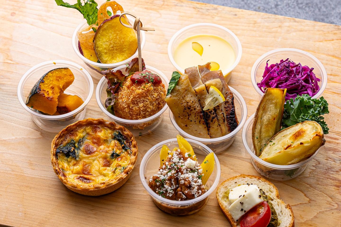 1. 紫キャベツのラペ 2. 南瓜のアグロドルチェ 3. 野菜のナチュラルチップス 4. トリュフ薫るコーンポタージュスープ 5. ボロネーゼパスタ 6. 若鶏もも肉のグリル 7.季節のブルスケッタ 8.玄米ライスコロッケ ※季節の旬の食材を使用するため、一部メニューが変更になる場合がございます。 ※使い捨て容器でお届けするデリバリープランです。設置・配膳・撤収等のサービスはついておりません。 ※基本的には同じお料理毎を容器に入れてお届けいたします。ご注文の人数に応じて端数が出た場合は、他の容器にて、別のお料理と混載となります。 |