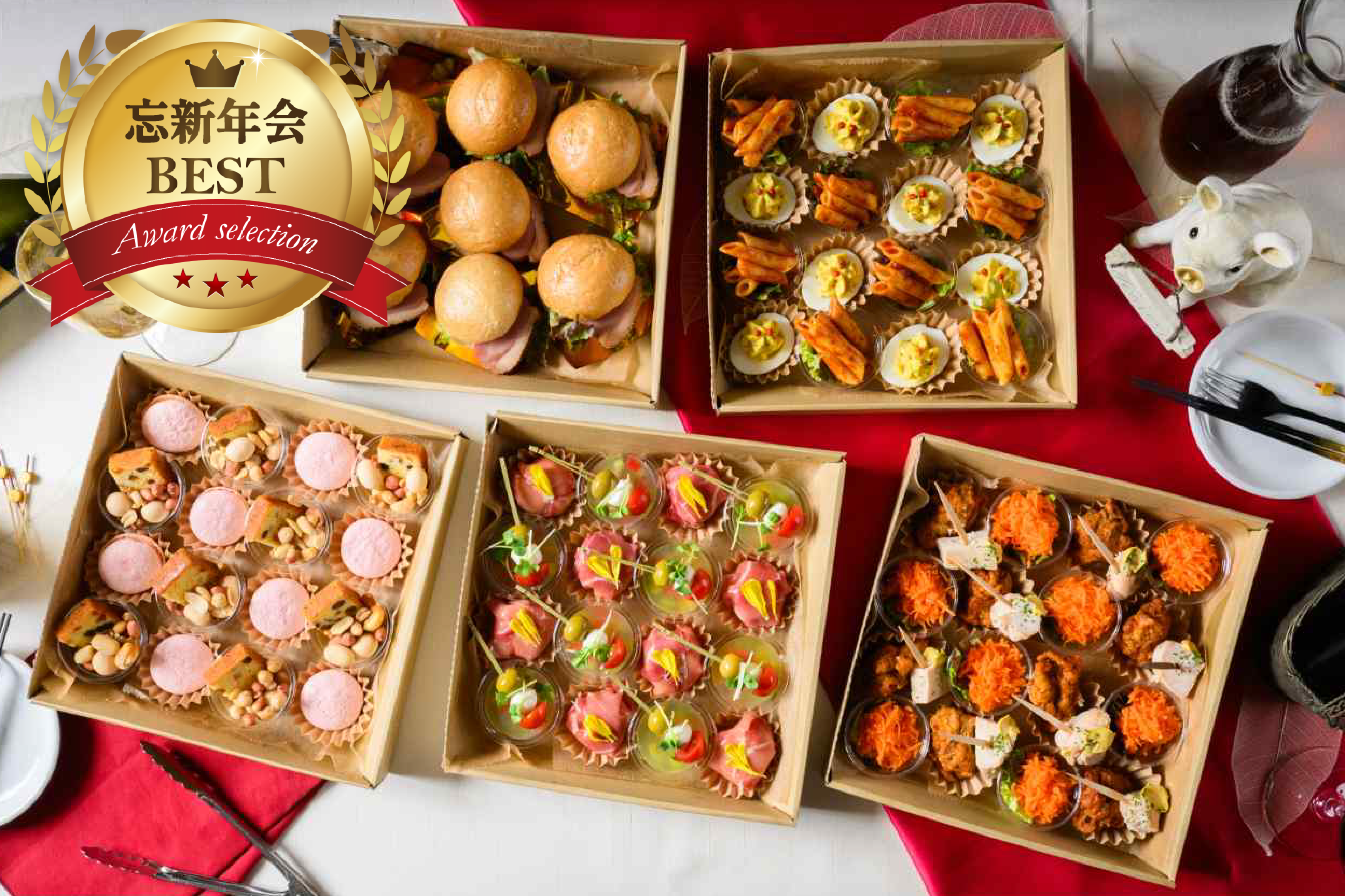 【食事11種】 ・トマトペンネ ・紫キャベツのマリネ ・白老牛の赤ワイン煮込み ・ハンバーグステーキのミニバーガー ・自家製ベーコンのキッシュ ・鴨肉のパストラミ ・カクテル野菜のゼリー ・ピンチョス ・サーモンのマリネ ・タコとクスクスのサラダ ・生ハムの手まりポテトサラダ 【スイーツ3種】 ・ドライフルーツのパウンドケーキ ・濃厚ガトーショコラ ・マカロン |