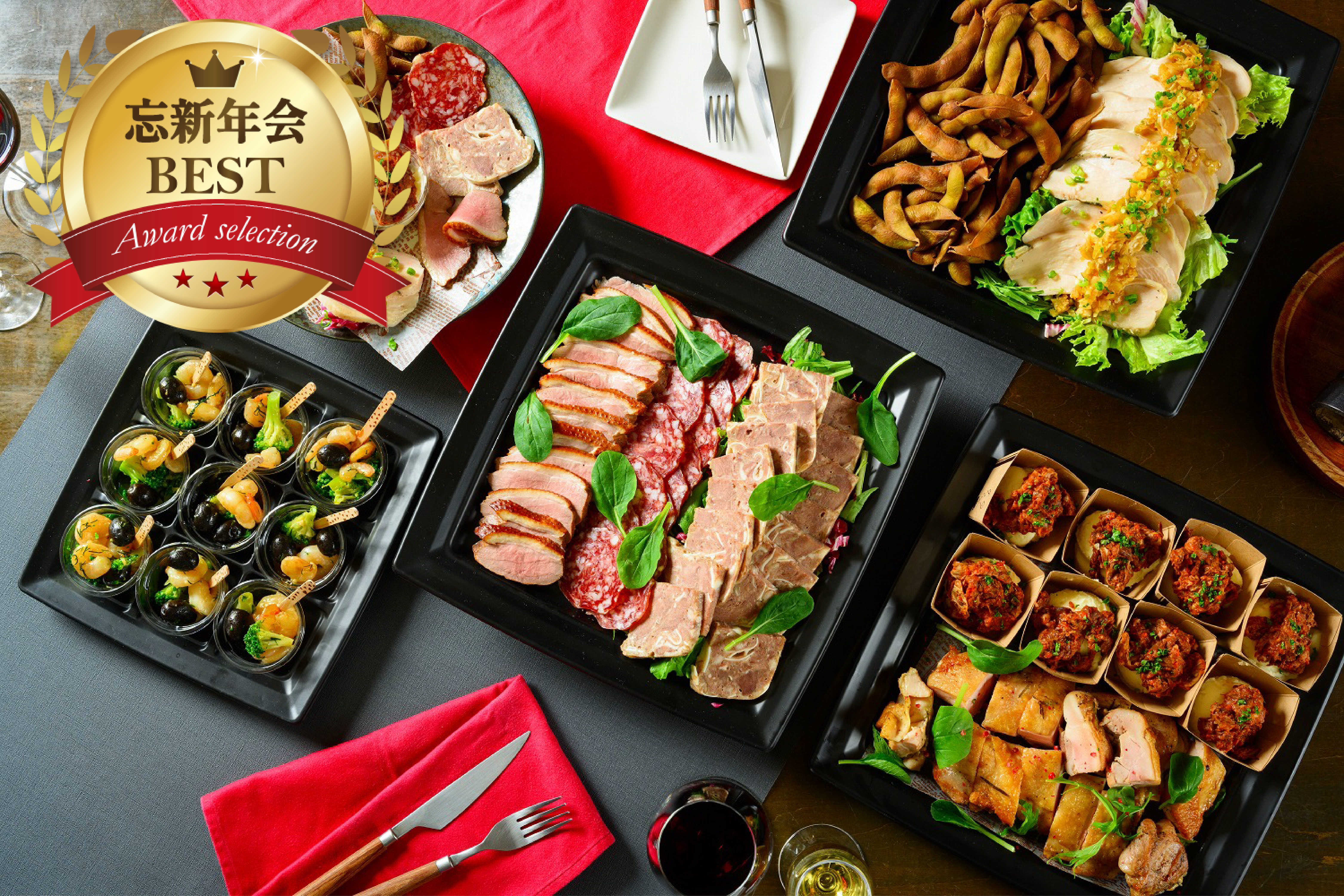 【肉料理~メイン3品~】 ①道産合鴨の自家製スモーク ②ローズマリー香るローストチキン ③牛タンのローストビーフ 【肉料理~前菜3品~】 ④フランス産サラミ ⑤豚耳と豚舌のテリーヌ ⑥自家製鶏ハムのよだれ鶏 【前菜・副菜3品】 ⑦枝豆のスモーク ⑧タコとオリーブのマリネ ⑨ミートポテサラ ※紙おしぼり・取り皿・割箸は人数分無料、取り箸サービス |