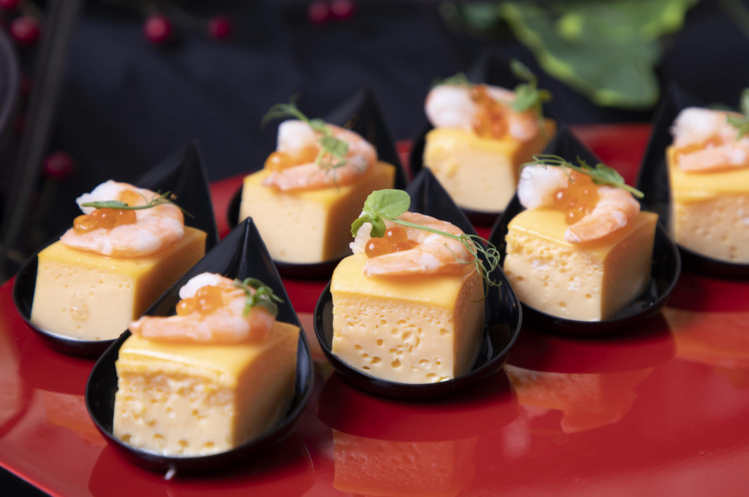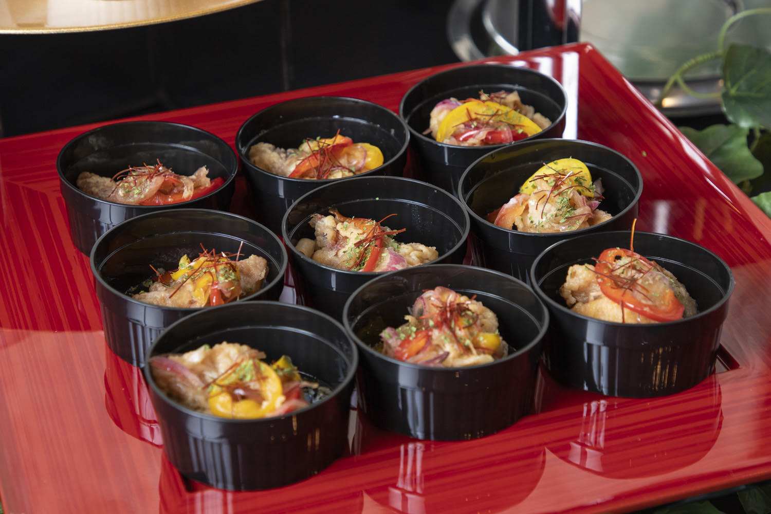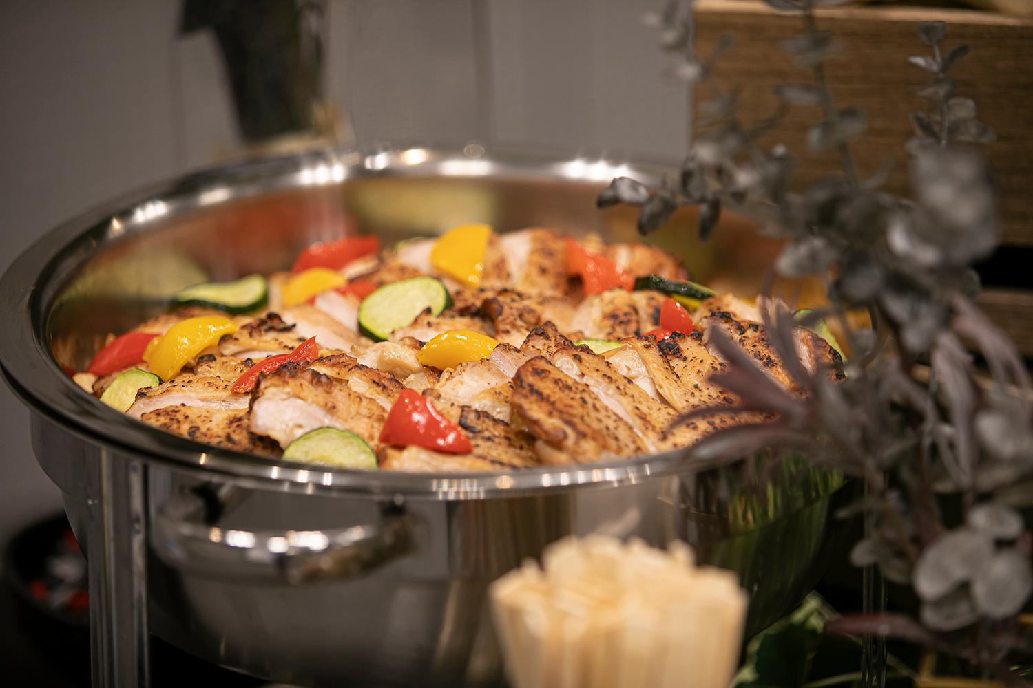 【冷製】 ①ローストビーフ ホースラディッシュジュレソース ②季節の1品~スモークチキンの彩りマリネ~ ③明太ポテサラ ④お魚のカルピオーネ ⑤軟骨入り鶏つくね串 ⑥出汁茶漬け(こちらの商品に変更可能、巻きずしor茶そば) ⑦自家製だし巻き玉子〜いくら、海老添え〜 ⑧握り寿司(お一人様3貫想定) ⑨和デザート盛り合わせ 【温製】 ⑩屋台風焼きそば ⑪エビチリ ⑫グリルチキン~塩ねぎソース~ ※本プランの温製料理については発熱材での加熱が可能です。 |