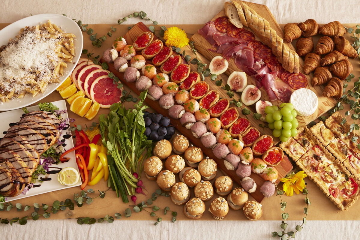 【FOOD】※仕入状況によって御提供メニューが変更となる場合が御座います。 ・手毬寿司(ローストビーフ、サーモン、いくら) ・カプレーゼキッシュ ・ミートソースペンネのオーブン焼き ・黒豚のポルケッタ ・シャルキュトリー盛り合わせ(生ハム、サラミ、パテ) ・オーガニック野菜のサラダ ・フルーツ盛り合わせ ・季節のタルト ※写真はいちじくとブルーベリーのタルトです 【LIVE提供】 ・ピザ(3種類程度) 【DRINK】2時間制 ・ビール(瓶ビール中瓶 人数×8割の本数+生ビールサーバー)/750ml/1名 ・ウイスキー(ロック・水割り・ハイボール) ・焼酎(麦/芋) ・ワイン(赤/白) ・カクテル(カシス、カンパリ、シャンディーガフ/オレンジ、ウーロン茶、ソーダ) ・ソフトドリンク(オレンジ、ウーロン茶、ジンジャエール、炭酸水) 【使用テーブルサイズイメージ】1800×450の会議用テーブル想定 〇ビュッフェ台 15名様分の場合・・・テーブル2台 30名様分の場合・・・テーブル4台 〇ドリンクカウンター カウンター1つにつき長机2~3台使用いたします。 使用テーブルについてはあくまでイメージとなります。実際のご参加人数様に応じて変動いたします |