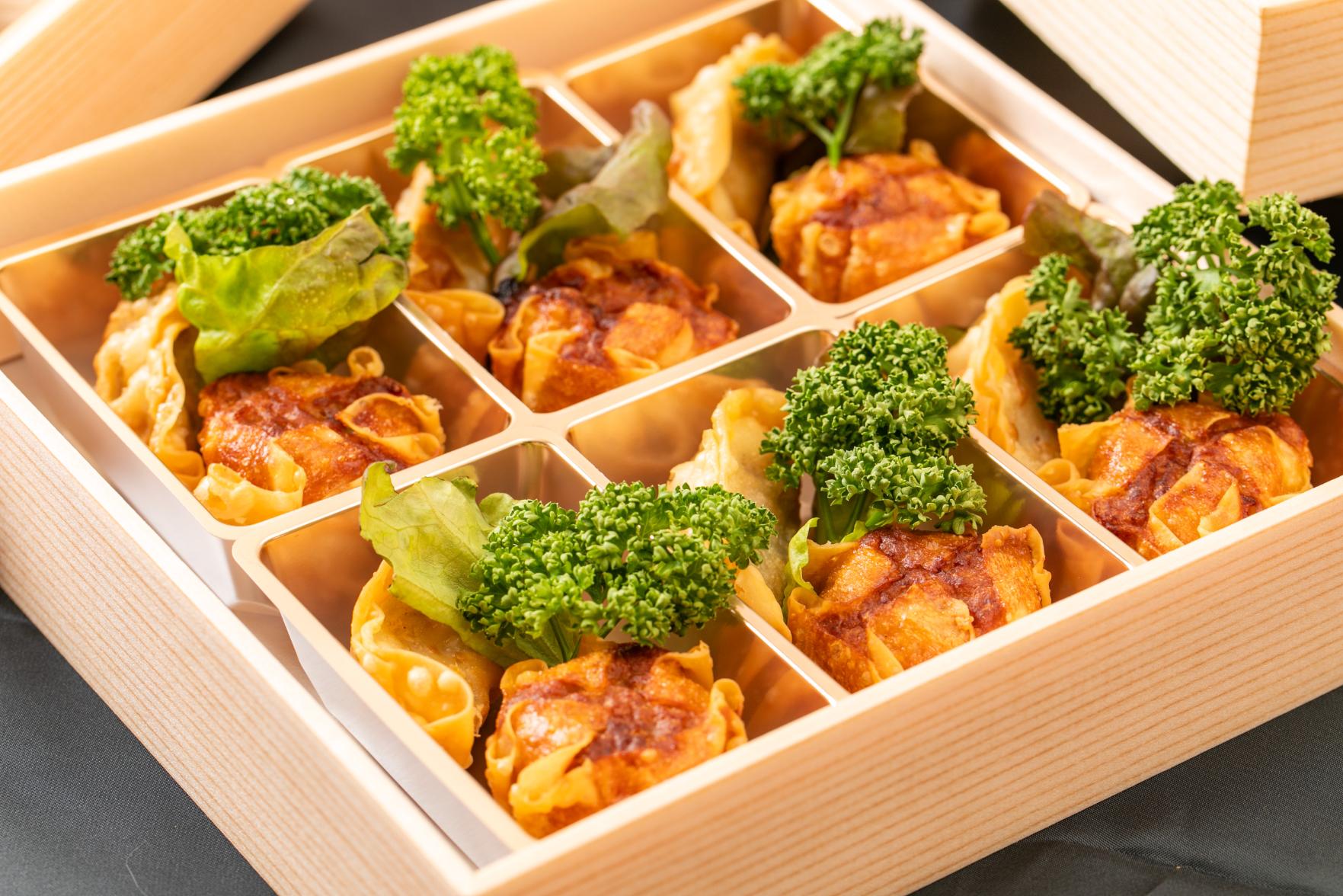 立食形式に最適な小分けにされたカップがついたオードブルプラン、揚げ物も含まれた会議後の懇親会などに最適な定番オードブル。 ▼春限定のプラスワン! ・桜の杏仁豆腐 ※使い捨て容器でお届けするデリバリープランです。設置・配膳・撤収等のサービスはついておりません。 ※基本的には同じお料理毎を容器に入れてお届けいたします。ご注文の人数に応じて端数が出た場合は、他の容器にて、別のお料理と混載となります。 ・ジャンボ焼売 ・揚げ餃子 ・博多名物筑前煮 ・博多名物明太鰯 ・卵焼き ・鯖の塩焼き ・烏賊焼売 ・厚切りチャーシュー 麻辣ソース |