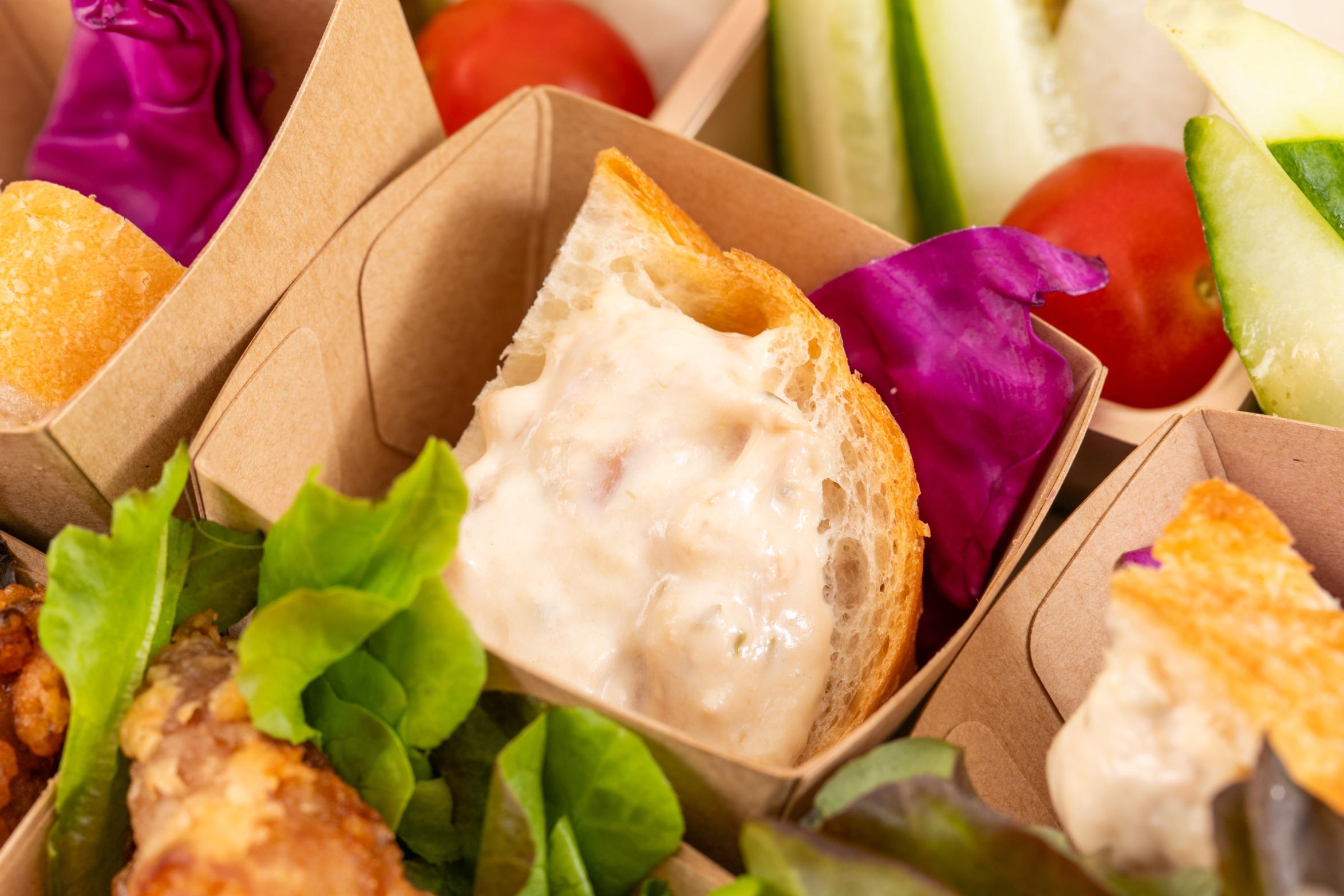 ▼春限定のプラスワン! ・パンナコッタ 握りずし(マグロ) 握りずし(サーモン) ショートパスタ ブラウニー ミツの自家製ローストビーフ カプレーゼ・ピンチョス チキンの香草焼き 魚介のマリネ ガーリックシュリンプ 生ハムのリエット シェフの一品(卵料理) ケークサレ バーニャカウダ風サラダ 唐揚げ ※使い捨て容器でお届けするデリバリープランです。設置・配膳・撤収等のサービスはついておりません。 ※基本的には同じお料理毎を容器に入れてお届けいたします。ご注文の人数に応じて端数が出た場合は、他の容器にて、別のお料理と混載となります。 |