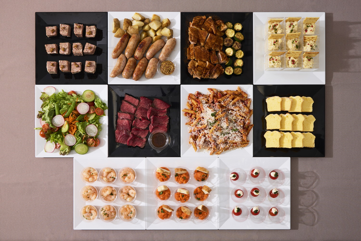 コストを抑えつつ、しっかり「量がある」印象を与えるカジュアルデリバリープラン。 カプレーゼやサラダ、パテ、ガーリックシュリンプなど前菜を中心に、ペンネボロネーゼと肉料理を組み合わせた満足感の高い内容です。 葡萄牛ローストビーフや若鶏グリル、リングイッサソーセージといった定番人気メニューを大皿感覚で盛り付け、テーブルに並べるだけで華やかな印象に。 短時間の懇親会や差し入れ需要にも使いやすいプランです。 |