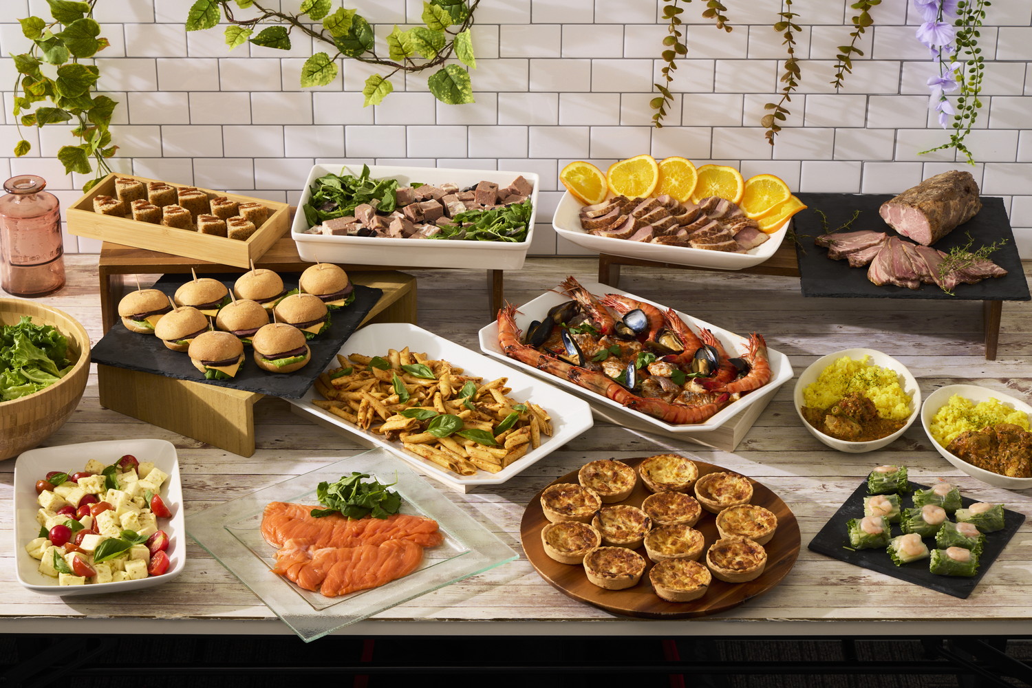 ・彩りトマトとモッツァレラの香草マリネ ☆爽やかハーブ香る前菜マリネ ・ハーブ香るパテとオリーブ ☆コク深いパテとオリーブの組合せ ・ノルウェーサーモンのカルパッチョ ~玉ねぎドレッシング~ ☆脂のり抜群の鮮魚カルパッチョと自家製ドレッシングで ・海老とシャキシャキ野菜の生春巻き ナンプラーの香り ☆食感と香りが楽しいアジアン前菜 ・ローストビーフのプチバーガー 照り焼き風味 ☆人気のミニバーガを自家製ー照り焼きソースで ・ベーコンとチーズのとろけるミニキッシュ ☆コク旨ベーコンのふんわりキッシュ ・魚介の旨みたっぷりブイヤベース風煮込み【温製】 ☆温かいスープごと味わう魚介の恵み ・やまゆりポークのロースト~赤ワインソースで~ ☆ブランド豚の柔らかポークと濃厚赤ワインの旨み ・ 濃厚ボロネーゼソースのペンネ ☆コク深いお肉の旨みたっぷり ・塩チキンとスパイス香る特製カレー【温製】 ☆スパイス香る専門店ならではのスパイスカレー。コク深いチーズとシャキ野菜の一皿 ・パルメザン香るクラシックシーザーサラダ ☆コク深いチーズとシャキ野菜の一皿 ・鴨肉のコンフィ オレンジガストリックソース【温製】 ☆しっとり鴨肉と柑橘ソースの調和 ・アールグレイ香るふんわりシフォンケーキ ☆紅茶の香り広がる軽やかケーキ 目安の分量 ピース料理:1ピース/人 パスタやお肉などの大皿料理:約50〜80g/人程度 |