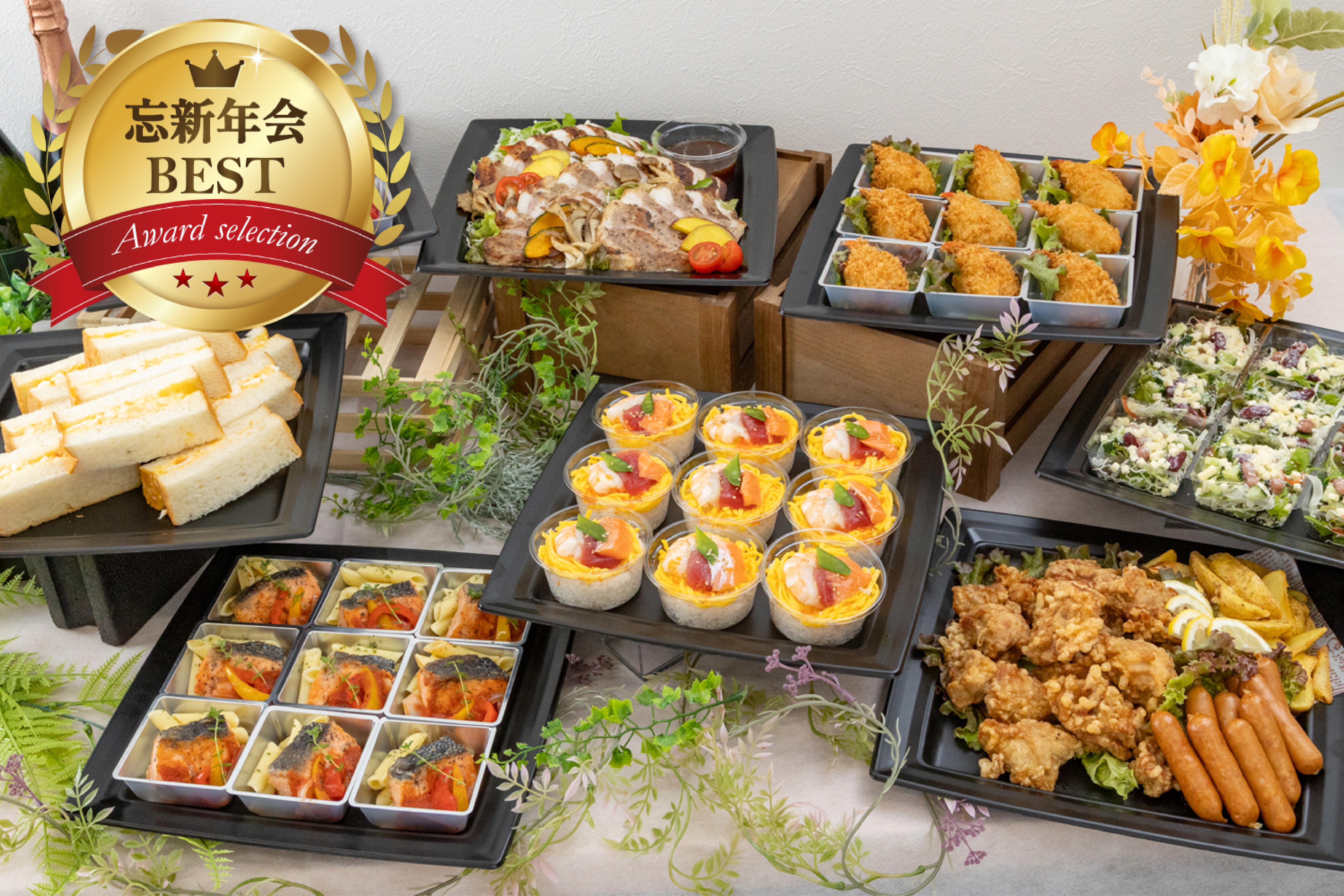 【8品】 ・さっくり 鶏のから揚げ&ポテトフライ&ウインナー (から揚げ 2個/人 ウインナー 1本/人) ・ふわふわ卵サンド (1切れ/人) ・彩り チラシ寿司 (1個/人) ・チーズたっぷりシーザーサラダ (1カップ/人) ・オマールフライ(1個/人) ・ジューシー ローストポーク(3切れ/人) ・サーモンのムニエル トマトソース(1カップ/人) ・季節のケーキ(1個/人) |