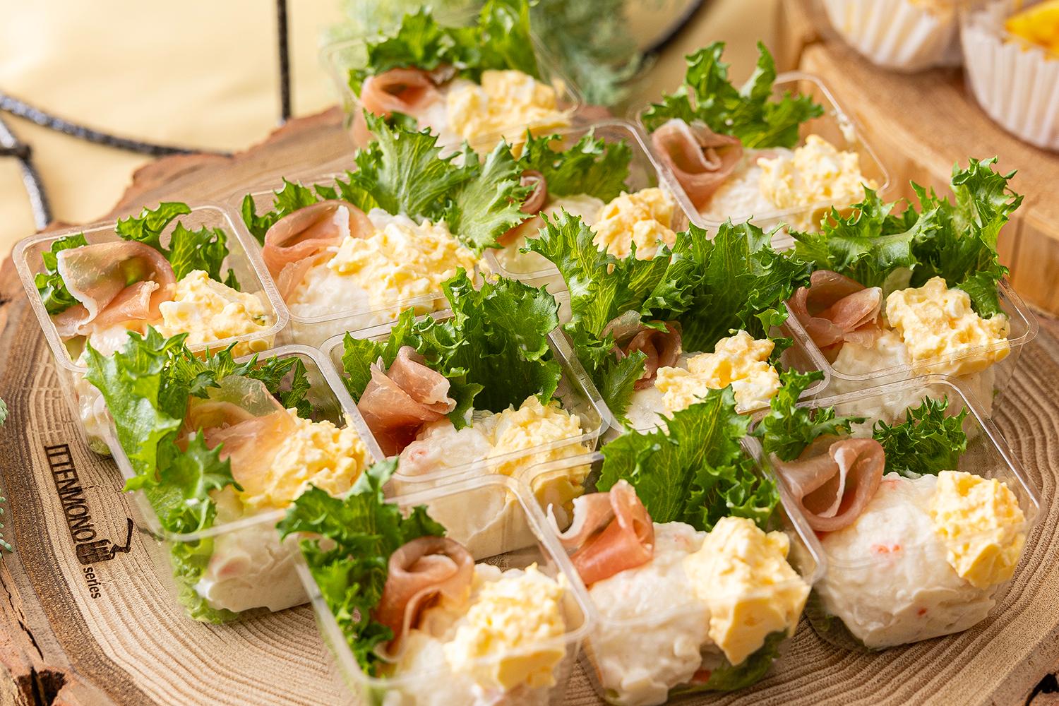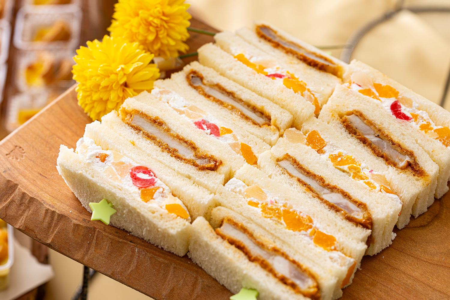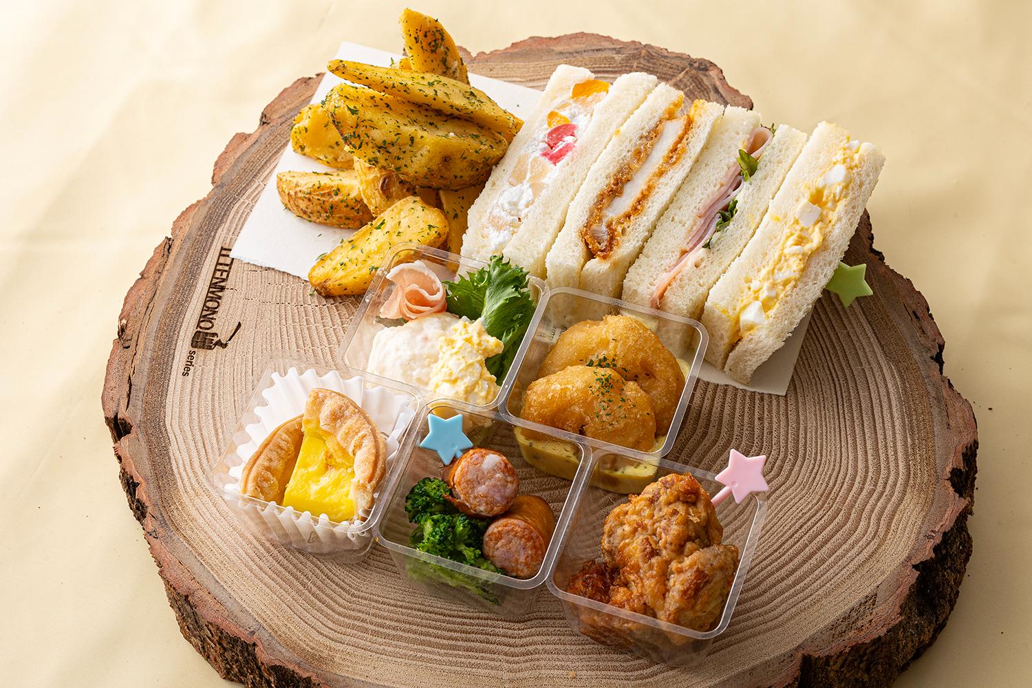 ・フライドチキン ・粗挽ウインナー&ブロッコリー ・小海老のフリット 特製タルタルソース ・エッグタルト ・生ハムとミモザのポテトサラダ ・ハムサンド ・卵サンド ・カツサンド ・フルーツサンド ・フライドポテト ▼春限定のプラスワン! ・いちご風味 ミニ大福 |