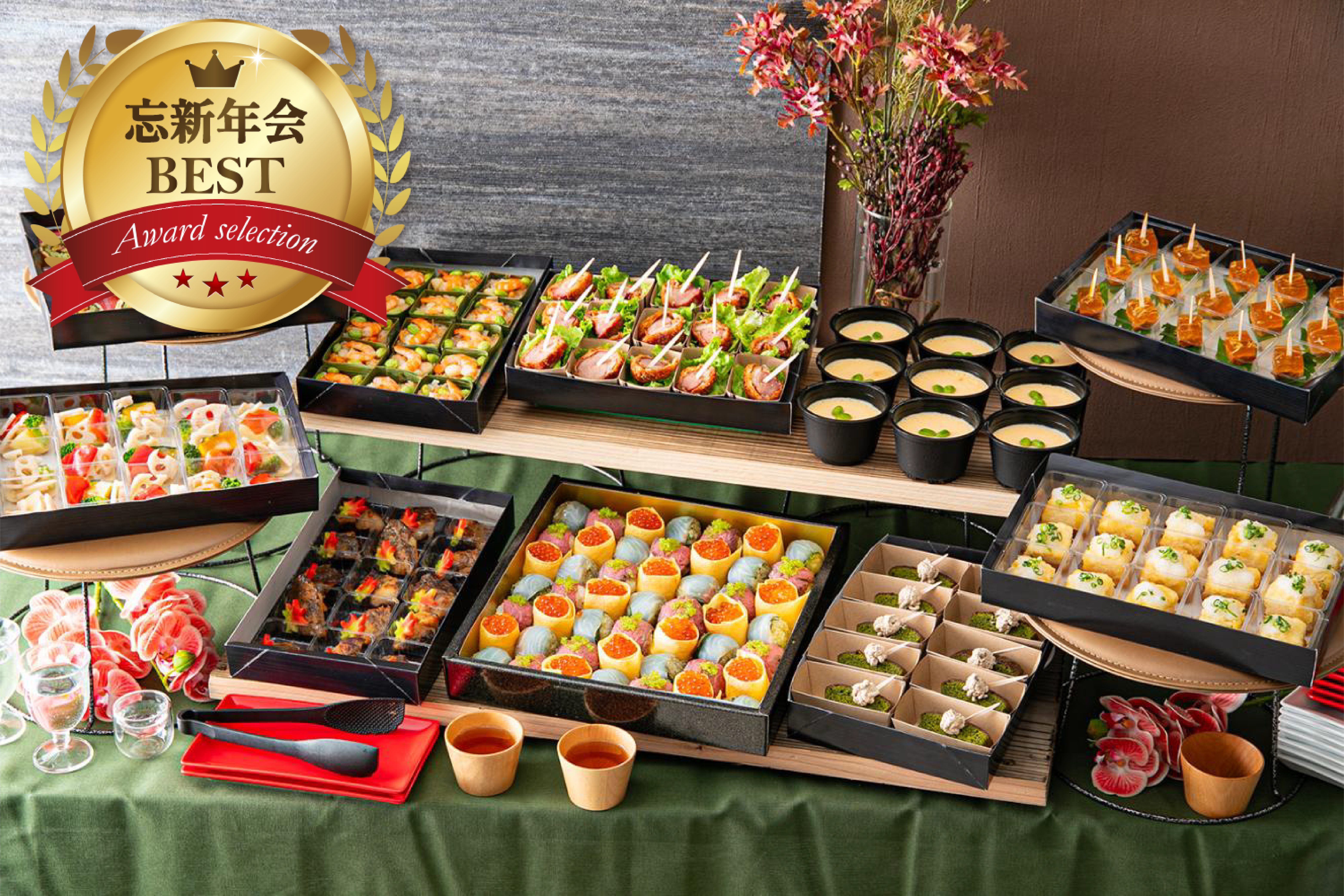 入社式、忘新年会、歓送迎会、社内懇親会(フォーマル)、社内懇親会(カジュアル)、ホームパーティー、冠婚葬祭